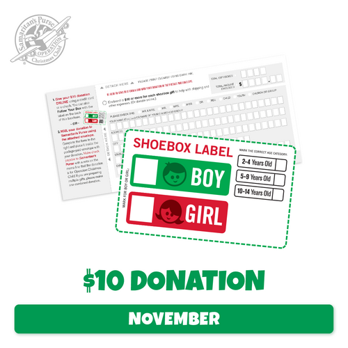 We collect items for Shoebox Gifts year-round! In November we organize everything and have "Packing Parties."